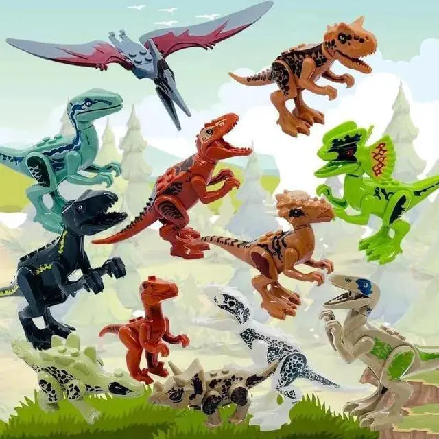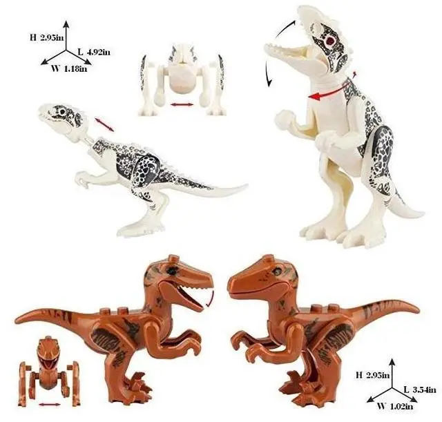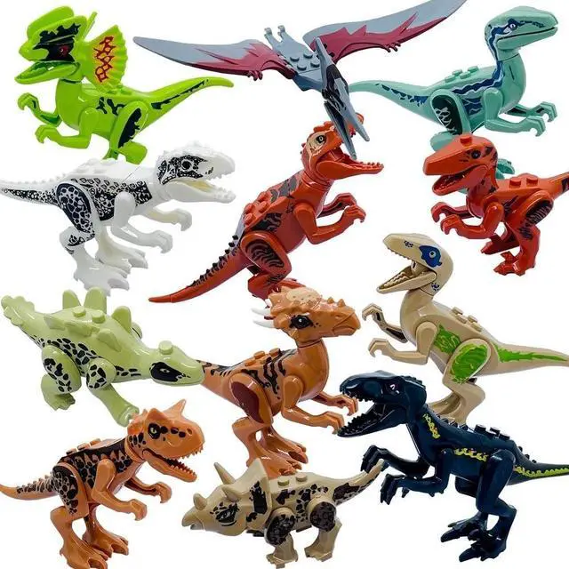 This dinosaur kit include 20 pcs cool dinosaurs: Khaki Velociraptor , Carnotaurus , Green Velociraptor , Velociraptor , Small Tyrannosaurus Rex , Indominus Rex , Tyrannosaurus , triceratops , Stygimoloch , Tyrannosaurus Rex , Stegosaurus , Dilophosaurus.