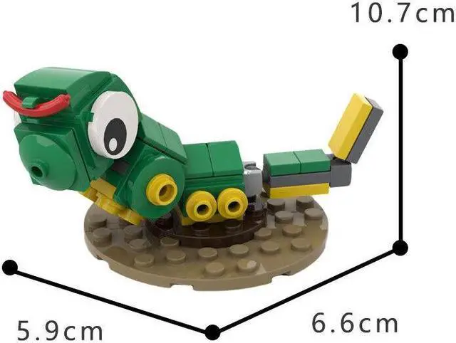 ZITIANYOUBUILD Green Caterpillar Model with Y-Shaped Red Tentacle 60 Pieces MOC