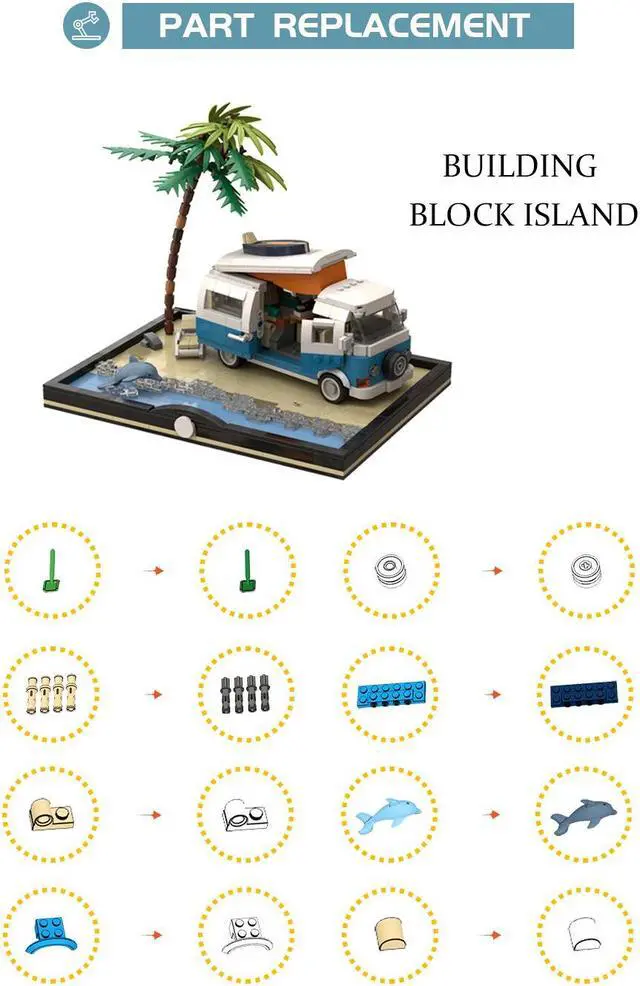 ZITIANYOUBUILD Beach Base Scene and Small Camper Model 962 Pieces Building Toys MOC