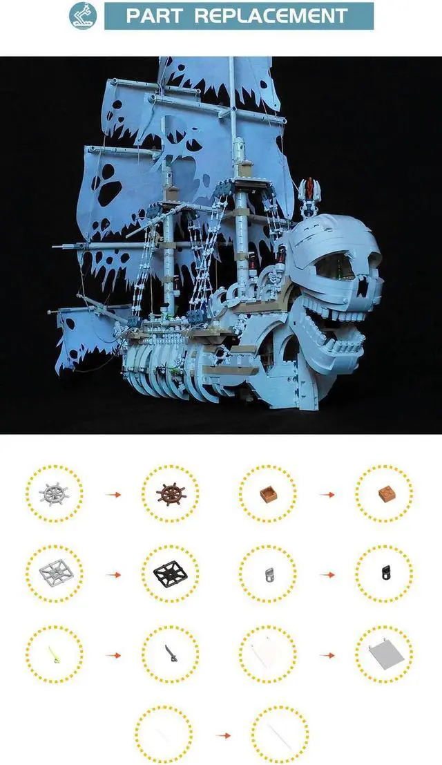 ZITIANYOUBUILD The Pirates Boat Model Made of Bones and Rotting Wood 2415 Pieces MOC