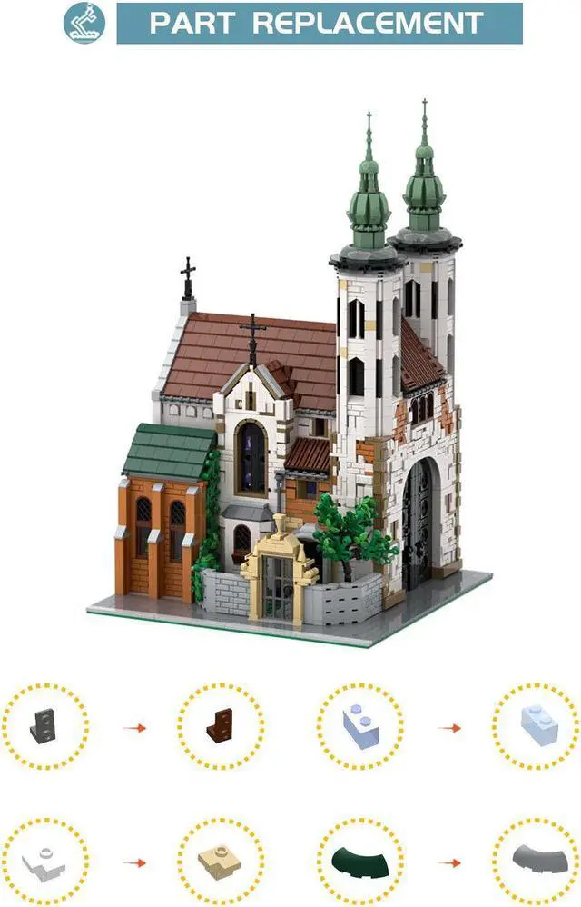 ZITIANYOUBUILD Small Medieval Church Model with Sacristy 3056 Pieces Building Toys MOC