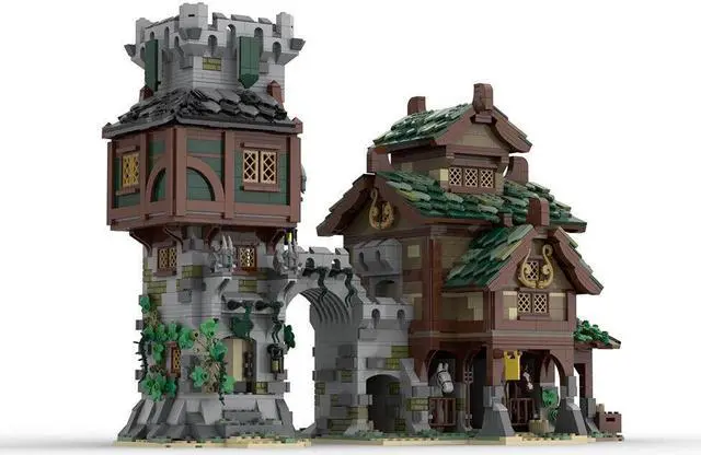 ZITIANYOUBUILD MOC-83831+MOC-80710 MEDIEVAL STABLE and MEDIEVAL GUARD TOWER 2888 Parts