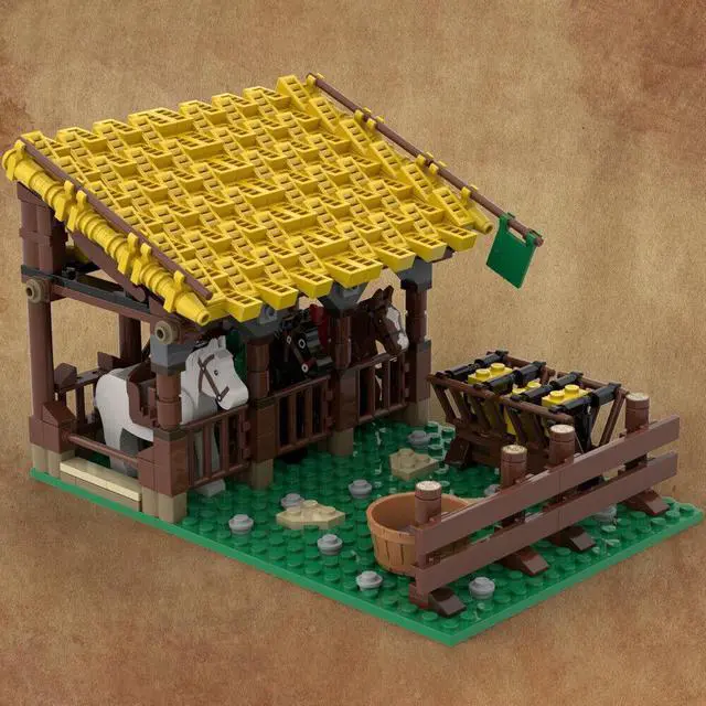 ZITIANYOUBUILD MOC-87706 Medieval Stables with Space for Three Horses Building Toys 481 Parts