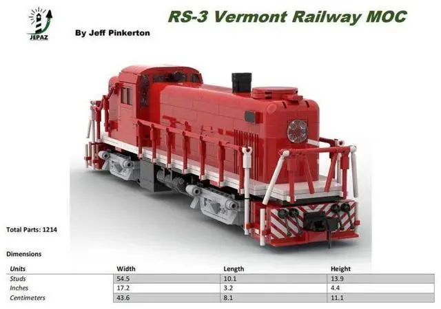 ZITIANYOUBUILD Custom MOC-118281 RS-3 Vermont Railways Train Model (1208 Parts/Dynamic Version)