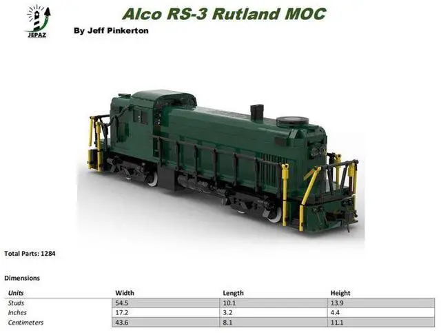ZITIANYOUBUILD Custom MOC-118286 RS-3 Rutland Train 1278 Parts Toys Gift for Christmas