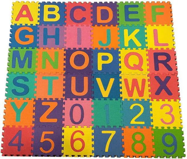 Entertaining Interlocking Puzzle: This foam play mat for children showcases vibrant letters and numbers that connect on the floor, forming a delightful play area! Encourage Early Learning: Capture the interest of your developing toddlers as they learn their ABCs and 1-2-3s with this interlocking foam play mat designed for ages 3 and up. Thick, Soft EVA Foam: Each foam puzzle mat is constructed with EVA foam, offering a comfortable and durable flooring solution for homes or classrooms. Lively, Bold Colors: These play mats for kids are available in a diverse array of captivating colors, fostering child development and ensuring children stay engaged and have fun. Spacious Play Set: Each order includes 36 play tiles, providing ample play space. Simple to Clean: Crafted to endure lively play, our foam floor mat is effortlessly cleaned, guaranteeing easy maintenance and enduring enjoyment for your children!