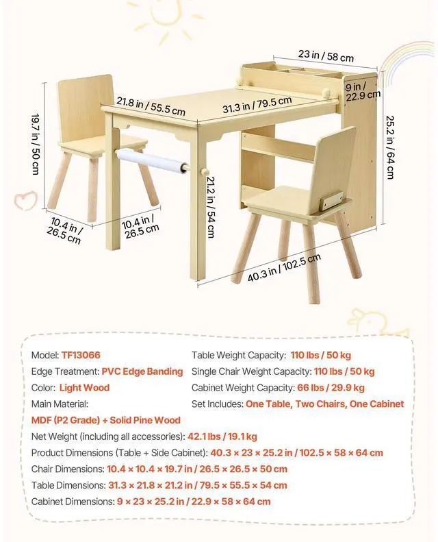 Product Dimensions (Table + Side Cabinet): 40.3 x 22.8 x 25.2 in/ 102.5 x 58 x 64 cm