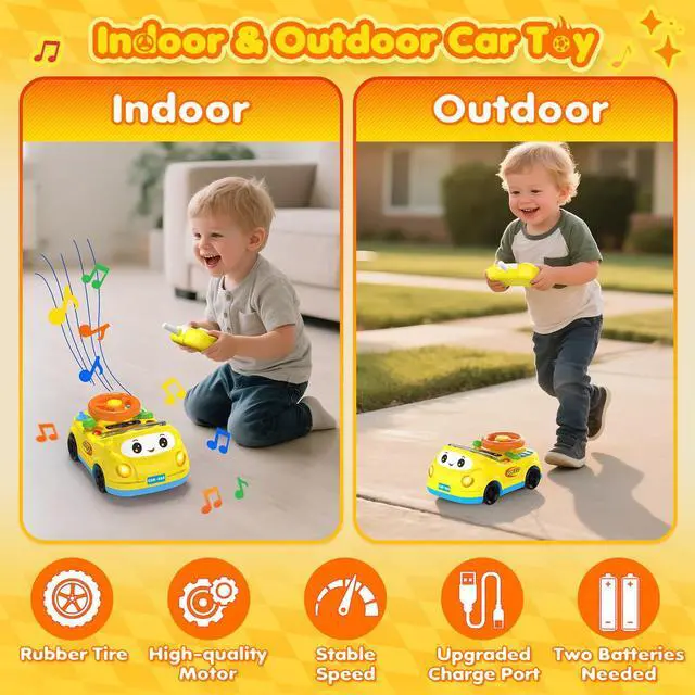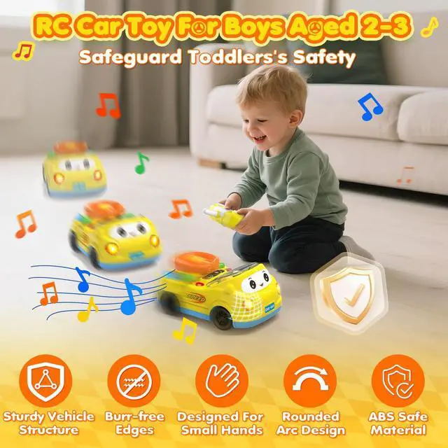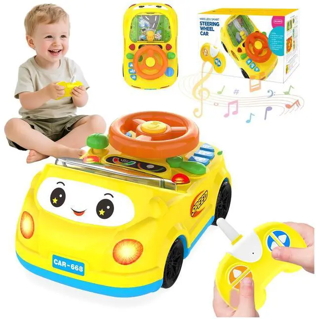 Toddler Toys for Ages 1-3 Boy - Remote Control RC Push Car Racing Adventure Steering Wheel Driving Games, Interactive Learning Educational Christmas Birthday Gift for Kids Age 1 2 3 (Yellow)