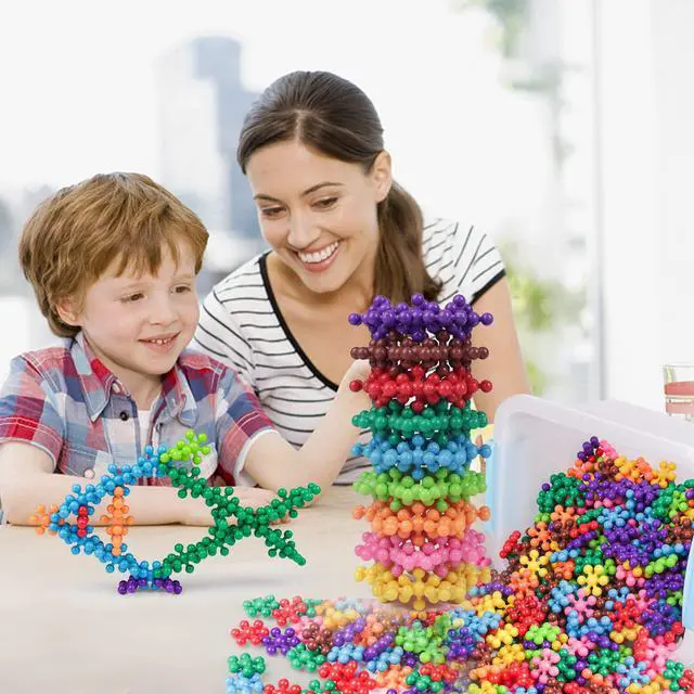 Value Pack: With 600 bold pieces in bright colors, it can be easy to combine into any 3D shape. Such as flowers, animals, cars, buildings, worlds and more by clicking pieces in place. With a plastic storage box, you can easily put the toy into the box to avoid loss, and it can be reused.