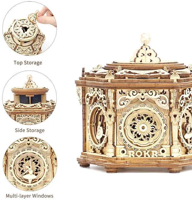 The antique style music box adds a unique layer to this timeless gift: Build a romantic jewlery box with beautiful tune yourself, and enjoy the never-ending joy afterwards. The pure joy to engage for hours is overwhelming for family. Gift for any occasion like birthday, Christmas, anniversary, etc.