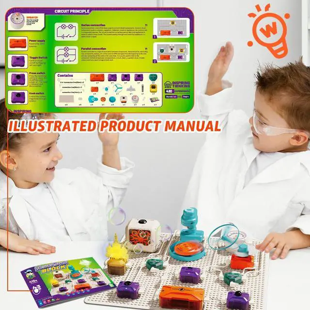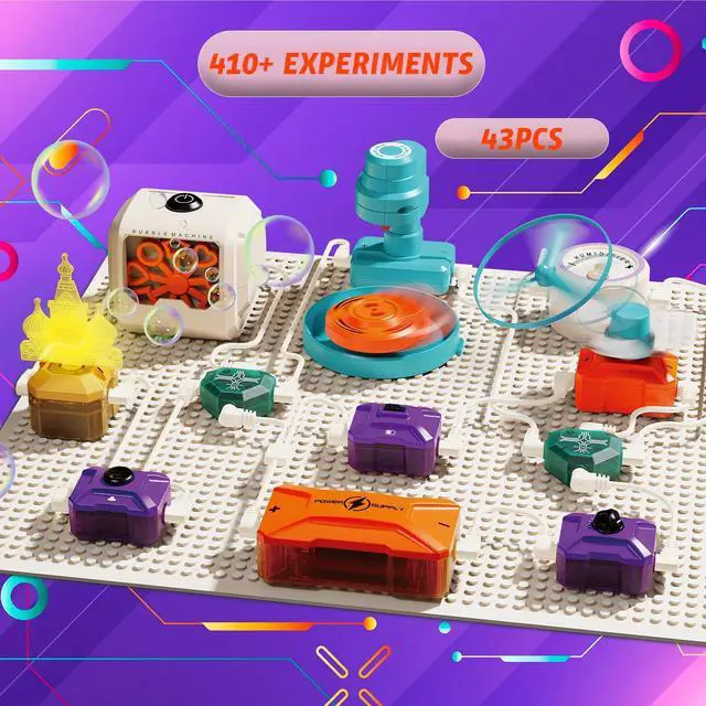BUILD OVER 410+ PROJECTS: Help your kids develop an early love of science with lonfypeng kit! This science kits educational toy features 43 components to build 410+ exciting projects, teaching kids aged 3-12 the fundamentals of circuits through hands-on play. From simple circuits to complex logical systems, nurture problem-solving skills and creativity.