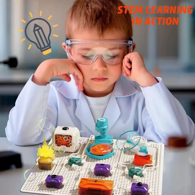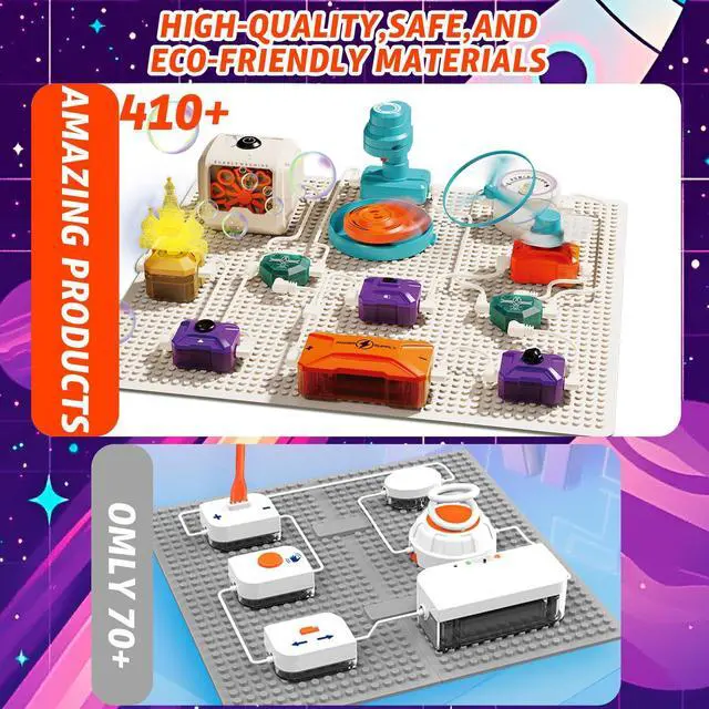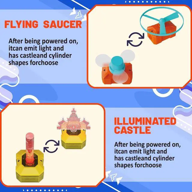 LEARNING FUN FOR KIDS: Electronics kit for kids include mini vacuum module, RGB light module and flying saucer accessories, etc. Kids learn physical knowledge of parallel/series connection through play, ignite your passion for circuit exploration! This science kit challenges kids to observe, question, and explore the world through hands-on experiments. :-)