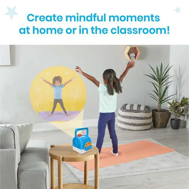 DEEP BREATHING TOOLS: Practice deep breathing, stretch with calming yoga poses, and unwind with serene scenes using our Calming Moments Projector! This versatile projector can help children practice mindfulness and learn self-regulation skills in a fun and accessible way.