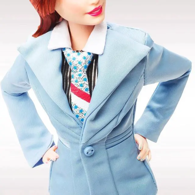 Barbie introduces a second collectible doll honoring the ultimate pop chameleon, David Bowie. With a career spanning over five decades, David Bowie continues to be recognized as a cultural vanguard for his contributions to music, art, fashion and film. To commemorate the 50th anniversary of his album, Hunky Dory, Barbie doll wears an authentic replica of the bespoke powder-blue suit Bowie wore in the 'Life on Mars?' music video, a foil-printed pin-stripe shirt, statement tie and platform shoes. The look is complete with bold blue eyeshadow and a hairstyle inspired by Bowie's '70s glam era. In displayable packaging, David Bowie Barbie doll is the ideal collector's item for Bowie and Barbie fans alike. Includes doll stand and Certificate of Authenticity. Doll cannot stand alone. Colors and decorations may vary.