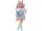 Doll is posable and wearing removable fashions, like her metallic crochet dress, layered over her white puffed-sleeve top, and blue cowboy boots!