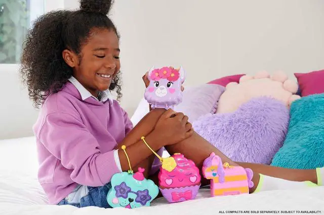 This Polly Pocket Unicorn Floatie Compact opens up to a magical pool party with micro Polly doll and friend!