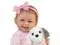 Artfully handcrafted with soft, baby powder-scented RealTouch® vinyl skin, Layla arrives all comfy and dressed in her puppy-print ruffled PJs, complete with puppy feet and a pink headband. Everything from her soft hand-rooted hair to her weighted cloth body adds to the realism of this vinyl baby doll, and she is even poseable so you can hold this baby girl doll in different cute positions all day long. Plus, her plush puppy is downright darling too, with a huggably soft body and a bandana that matches Laylas sleeper.