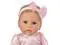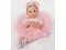 This darling girl's little body is poseable and weighted to fit perfectly in your arms. The sculptural and artistic details include such special features as hand-painted lips and fingernails, hand blushed cheeks and limbs, and delicate eyelashes meticulously hand-placed along her eyelids to show off those gorgeous baby blues. Her head is crowned with wisps of hand-rooted hair, and her plump limbs are crafted in our exclusive RealTouch® skin that absolutely lives up to its name, so smooth and soft like a newborn baby's. With a coordinated hand-tailored outfit (seven pieces in all! )