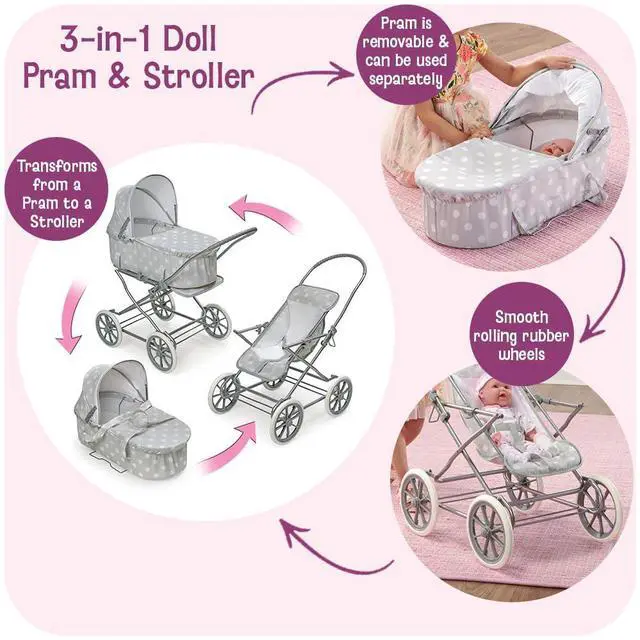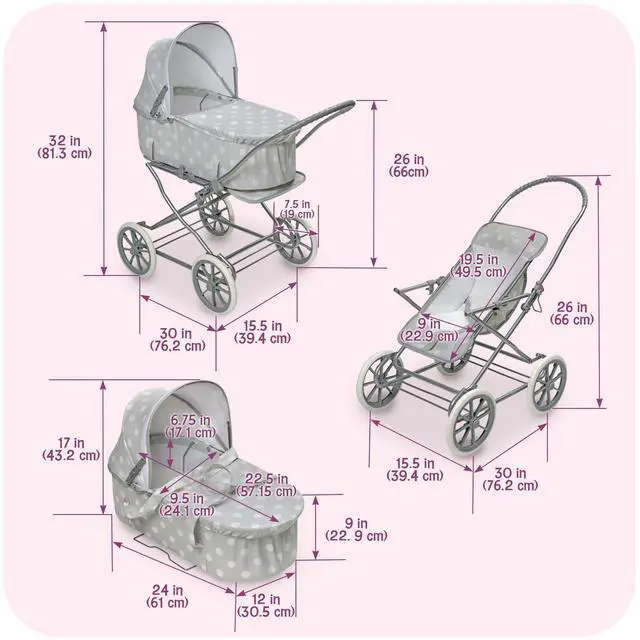 | Item Type Name | Just Like Mommy 3-in-1 Doll Pram/Carrier/Stroller (fits American Girl dolls), Gray/White |