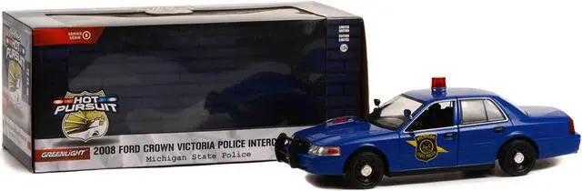 Brand new 1/24 scale diecast car model of 2008 Ford Crown Victoria Police Interceptor Dark Blue "Michigan State Police" "Hot Pursuit" Series die cast model car by Greenlight.