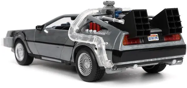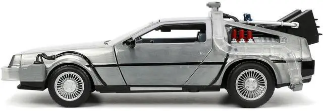DeLorean Brushed Metal Time Machine with Lights \Back to the Future\ (1985) Movie \"Hollywood Rides\" Series 1/24 Diecast Model Car by Jada"""