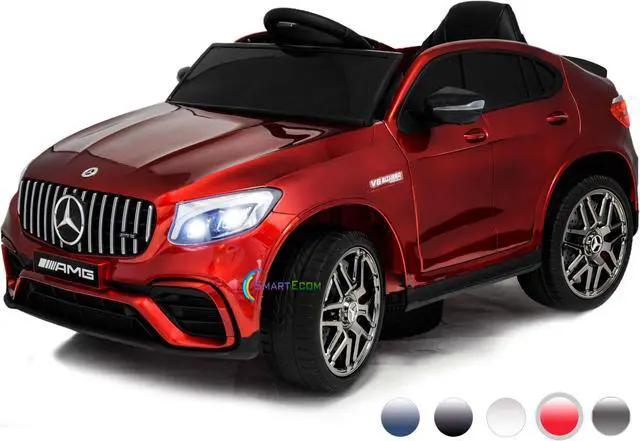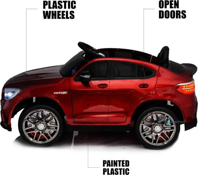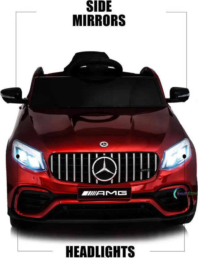 Ride On Toys - Electric 12V Battery Powered RC Car - Kids Ride On Car with Sound Buttons, Open Doors, Leather Seat, MP3 for Music, Education, Horn, Red Compatible with Mercedes-Benz