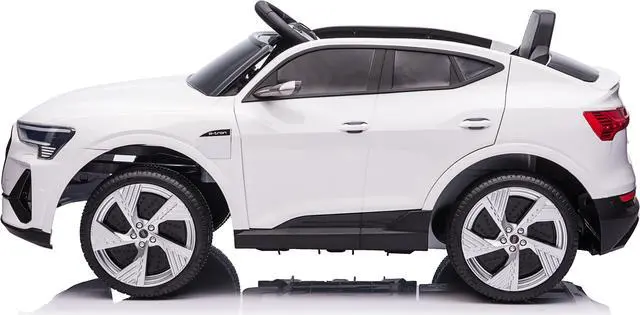 The children's car is equipped with a soft leather seat and wheels suspension system that will provide smoothness and noiselessness of the car. Ride on car will delight your child, because it is so similar to an adult car of the brand. A beautiful shiny exterior and an open top make the model very stylish. The speed of the kids car reaches 3-4 mph. Both your and your child can listen to music that is controlled by a MP4 touchscreen media system. In addition to the standard recorded melodies, you can record your own or even play cartoons for your child. A kid can drive himself/herself, or can simply enjoy a trip while parents control it using a remote. There is no need to worry about the safety, because there are safety belts. The electric car is equipped with plastic wheels and the rear ones are driving.