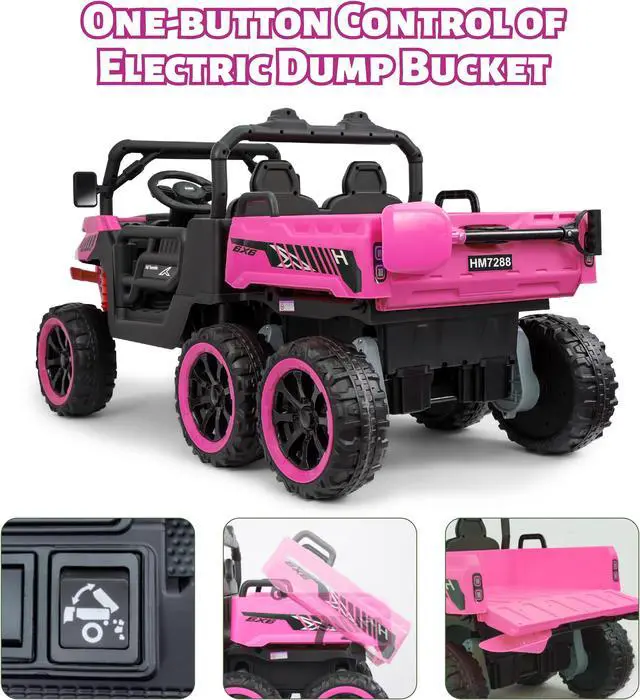 - **Functional Dump Bed**: Get ready for some serious playtime with the large electric dump bed! Measuring 20''*15''*5'', it features an adjustable tailgate that can hold up to 20 lbs. One-button control makes loading and unloading toys a breezeperfect for young construction enthusiasts!