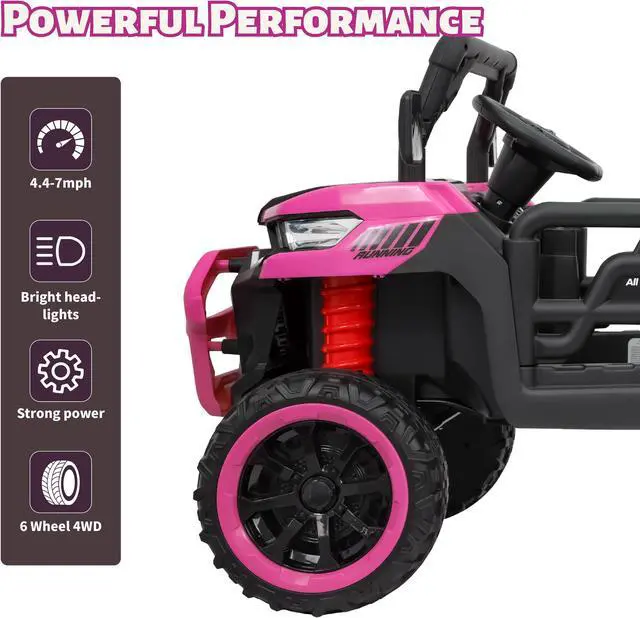 - **Double the Fun**: Enjoy the best of both worlds with dual modes! Your little driver can experience the thrill of manual steering or let you take control with the 2.4G Bluetooth remote. Switch between low speed ( 4.4 mph) and high speed (7mph) for an exciting ride-on experience tailored for every level of adventurer.