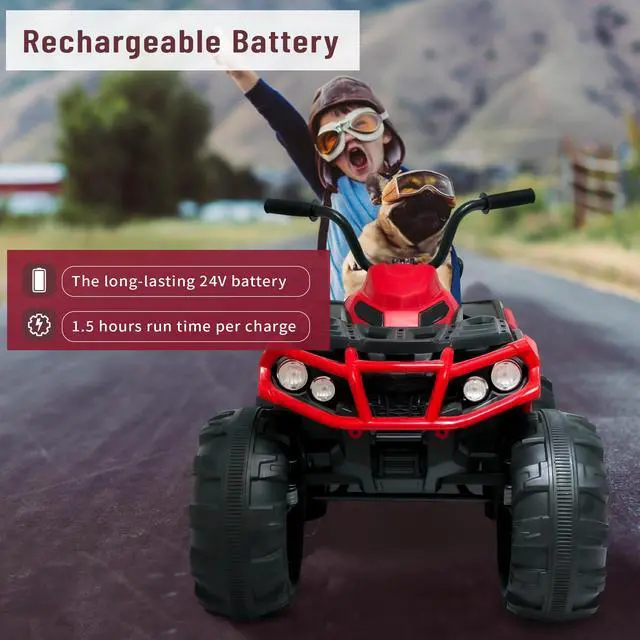 Say goodbye to worries about running out of battery during adventures! Our ATV is powered by a strong 24V battery, providing approximately 1.5 hours of continuous playtime. Let your child fully immerse themselves in the game without any interruptions.
