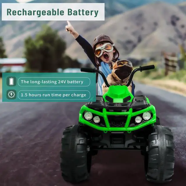 Say goodbye to worries about running out of battery during adventures! Our ATV is powered by a strong 24V battery, providing approximately 1.5 hours of continuous playtime. Let your child fully immerse themselves in the game without any interruptions.