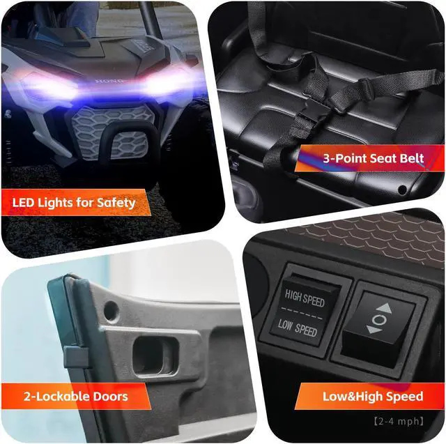 - **Speed Options to Fit Their Style: With a high-low speed design of 2-4 mph, your kids can cruise at their own pace! This versatile UTV car is perfect for both speedy adventures and relaxed exploration.