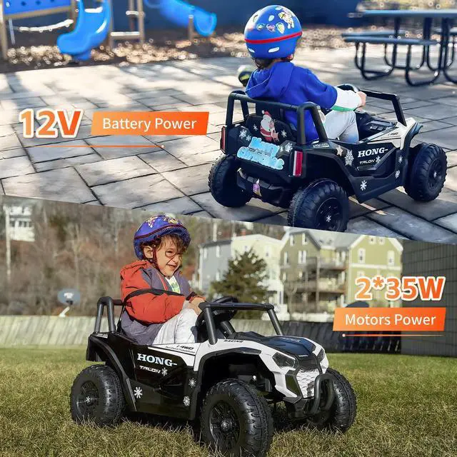 - **Ride on UTV Adventure: Let your little ones hit the road in style with our Kids Ride on UTV car! This fun and exciting vehicle features a powerful 12V battery and 2*35W motors, ensuring up to 1 hour of fantastic driving fun.