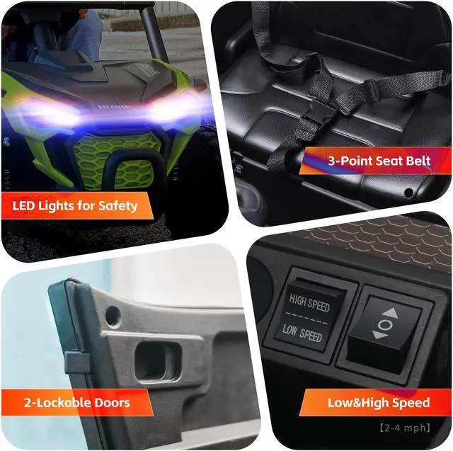 - **Speed Options to Fit Their Style: With a high-low speed design of 2-4 mph, your kids can cruise at their own pace! This versatile UTV car is perfect for both speedy adventures and relaxed exploration.