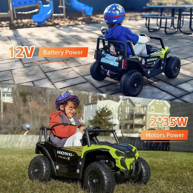 - **Ride on UTV Adventure: Let your little ones hit the road in style with our Kids Ride on UTV car! This fun and exciting vehicle features a powerful 12V battery and 2*35W motors, ensuring up to 1 hour of fantastic driving fun.
