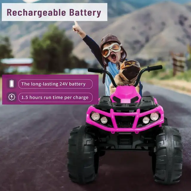 Say goodbye to worries about running out of battery during adventures! Our ATV is powered by a strong 24V battery, providing approximately 1.5 hours of continuous playtime. Let your child fully immerse themselves in the game without any interruptions.