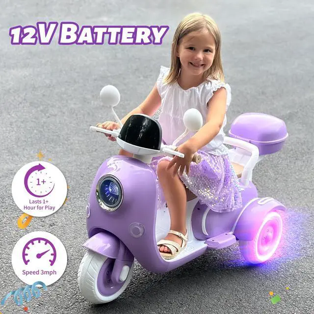 Ride On Motorcycle Toy 3-Wheeler Battery Powered Electric Motorbike for Kids Age 2+ Years with Bluetooth Music Headlight Storage Trunk Horn for Boys & Girls