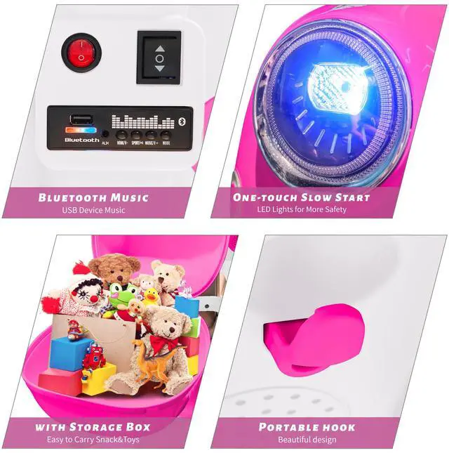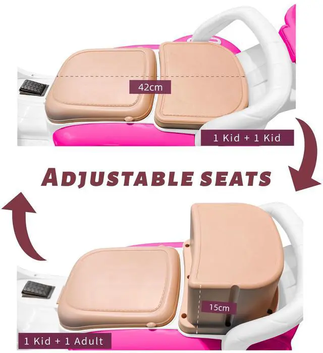 Seat]: The motorcycle is equipped with a versatile seat that can be flipped and combined to create a higher seat position. This allows younger children to sit in the front, while older ones can sit on the elevated rear seat, promoting interactive playtime!
