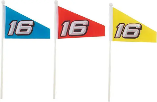 -3 flags of different colors plus bright LED headlights and taillights for fun