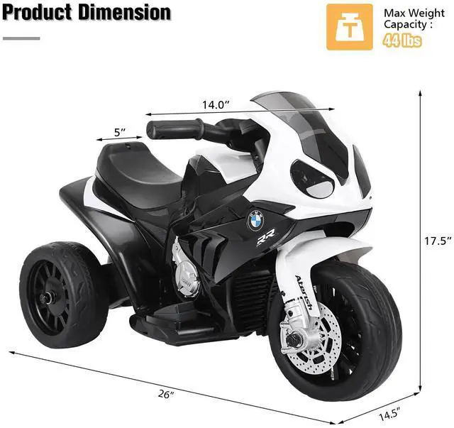 Superior Material, Safe 3-wheel Design: This kids ride on motorcycle is equipped with three high quality PE wheels, preventing the motorcycle from falling down in any circumstance. Combines superior materials and scientific structure design, its load capacity is up to 44 lbs.