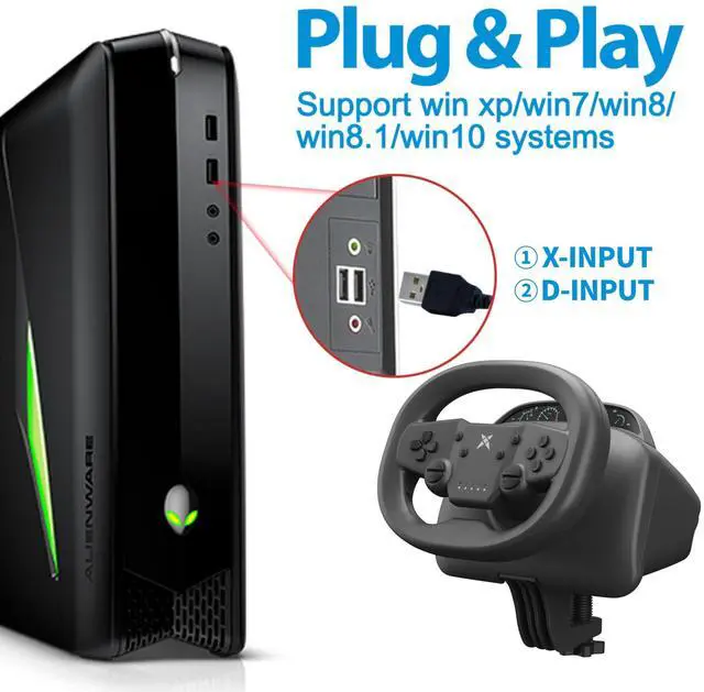 Pro PC Racing Wheel: This pc racing wheels experience immersive gaming with built-in dual-vibration motors, adjustable intensity levels, and advanced sensitivity settings. Supports PC X-input and D-input, with programmable buttons for customization