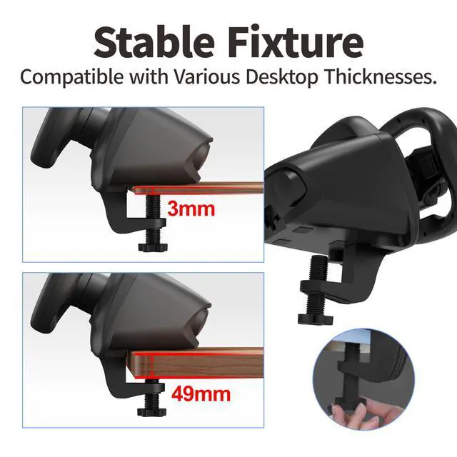 Ergonomic Design: Durable and comfortable professional game steering wheel with 270-degree rotation and compatibility with various desktop thicknesses