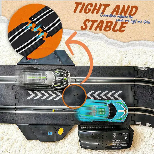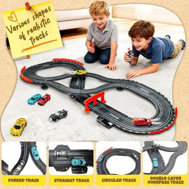 Simulation Racing Track: Our slot car race track sets equipped with a wide variety of track sections, including simple straight track, S-shaped track, forked track, circular track and exciting double-layer overpass track. At the same time, the track is equipped with lap markers and checkpoints to feel the thrill of galloping.