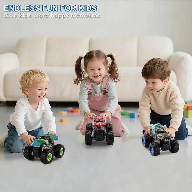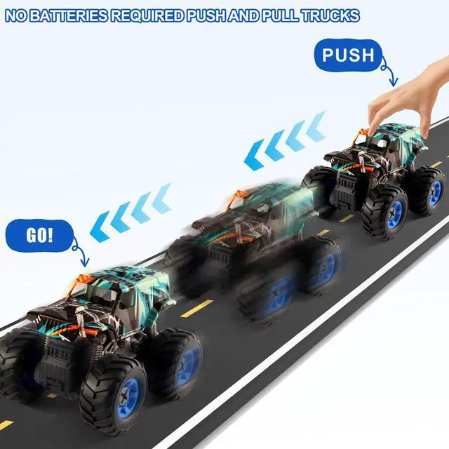 No batteries are required—just push these cool monster trucks, and they’ll use friction to speed along the road, developing your kids’ spatial creativity and thinking skills.