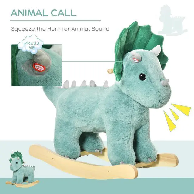 combines a triceratops design with updated features of the realistic sound of triceratops when squeezing its horn that adds more fun while your kids are playing.