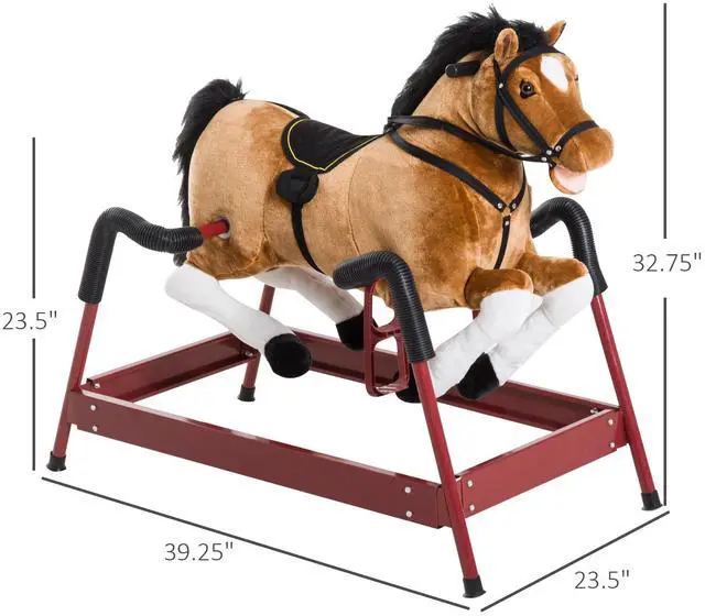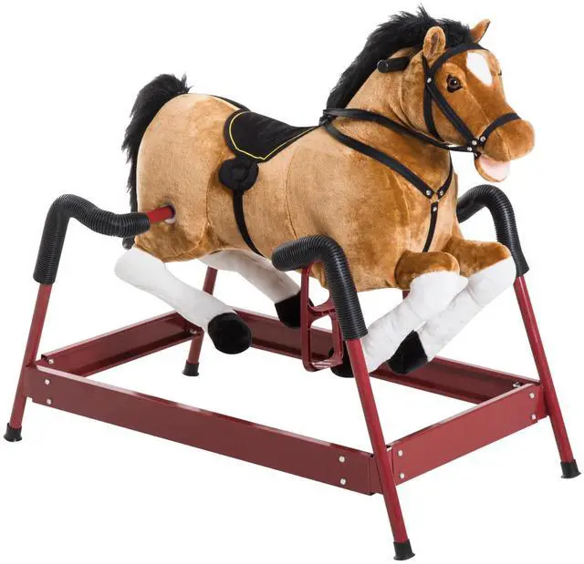 Soft Huggable Plush Body: Our rocking horse has a softly padded polyester plush body and comfortable riding saddle that recreate the look and feel of thrilling horseback riding adventures.