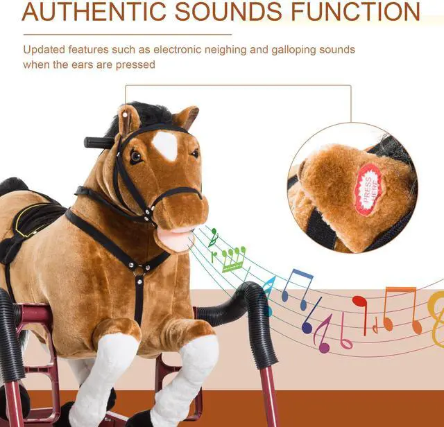 Authentic Sounds: Combines a traditional plush spring horse rocker with updated features such as electronic neighing and galloping sounds when the ears are pressed.