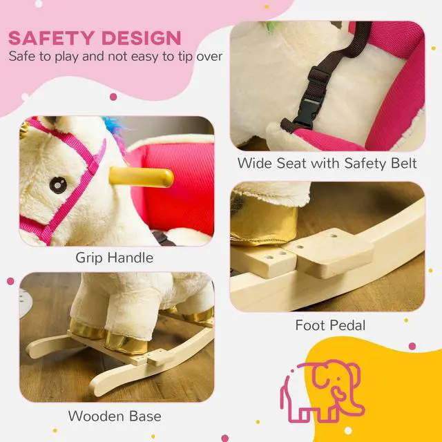 Safety First: Equipped with a backrest, safety belt, and pedals, this toddler rocking horse ensures a secure and comfortable ride for your kiddo.
