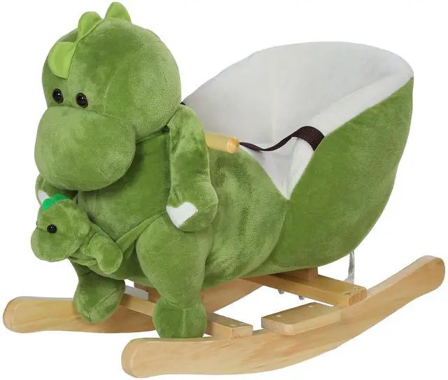 Dinosaur Delight: This baby rocking horse features a charming dinosaur shape and a cuddly dinosaur hand puppet. It's complete with 32 songs to entertain and soothe Soft and