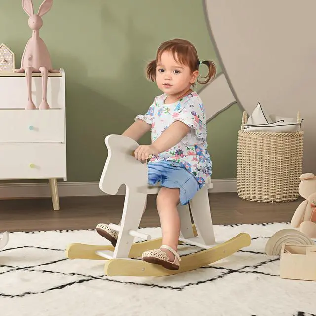 • Wooden Rocking Horse Toddler Baby Ride-on Toys for Kids 1-3 Years with Classic Design & Solid Workmanship, White
